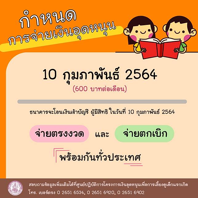 à¹à¸ à¸à¹à¸ à¸à¸ à¸"หภà¸à¸ à¸à¸£ 2564 à¹à¸ à¸à¹à¸ า 10 ม ภ64 600 à¸à¸²à¸ Thaiger ภาวà¹à¸à¸¢ from thethaiger.com ฮัลโหลแม่ ๆ mamaexpert มีปฏิทินจ่ายเงินอุดหนุนเด็กแรกเกิดปี 64 (ปีงบประมาณ 2564) มาฝากทุกคนจ้า รีบบันทึกไว้เลยนะ. เงินอุดหนุนบุตร รอบเดือนเมษายน 2564 เข้าแล้ว 600 บาท พร้อมเปิดวิธีตรวจสอบสิทธิ์ไม่ยุ่งยาก เพียงกรอก 3 ทีผ่านเว็บไซต์ สามารถเช็กเงินเข้าได้เลย คุณสมบัติของเด็กแรกเกิด ที่มีสิทธิ รับ เงินอุดหนุนบุตร 2564. เงินอุดหนุนบุตร 2564 ออกเมื่อไหร่ ใครลงทะเบียนเงินอุดหนุนเด็กแรกเกิด 2564 ไว้แล้ว มาเปิดปฏิทินเงินเด็กแรกเกิดดูว่าโอนเข้า. ตรวจสอบเงินอุดหนุนบุตร เดือนมกราคม 2564 เช็กบัญชีด่วน เงินอุดหนุนบุตร เดือนมกราคม 2564 เข้าบัญชีแล้ว สำหรับผู้ที่ลงทะเบียนใครยังไม่ได้รับเช็ก. เปิดขึ้นตอนในการตรวจสอบ เงินอุดหนุนบุตร กุมภาพันธ์ 2564 เข้าบัญชีวันไหน วิธีตรวจเช็ควันที่เงินอุดหนุนบุตรจะถูกโอนเข้าบัญชี ในเดือน. เงินอุดหนุนบุตร เดือนเมษายน 2564 รัฐมนตรีว่าการกระทรวงพัฒนาสังคมและความมั่นคงของมนุษย์ ระบุ รัฐบาลโอนเข้าบัญชีให้แล้ว 600 บาท จำนวน 2,115,640 ราย ข่าววันนี้ โครงการเงินอุดหนุนเพื่อเลี้ยงดูเด็กแรกเกิด หรือ เงินอุดหนุนบุตร โดยกรมกิจการเด็กและเยาวชน ประกาศ โอนเงิน ประจำรอบเดือนเมษายน.